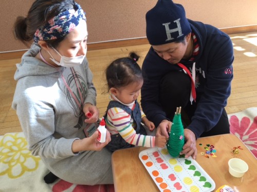 今日は月に1度、土曜日にプレイパークがオープンするオハナデー✿ 12月のオハナデーイベントは親子でミニクリスマスツリー作りをしました! ママと協力しながら毛糸をマキマキしていきます。子どもたちの目も真剣です☆ お父さ