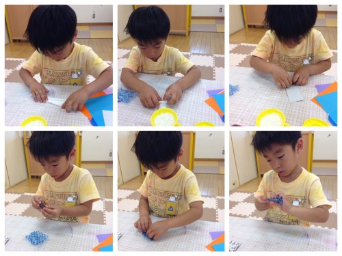 何やら、黙々と真剣に作っております… ボーリングのピンを作っているのだとか(*^_^*) 今度は村田が教えたものを集中して作っています。 これはチョコレートです(^_^) 明日はママの誕生日で、プレゼントするんですって♡