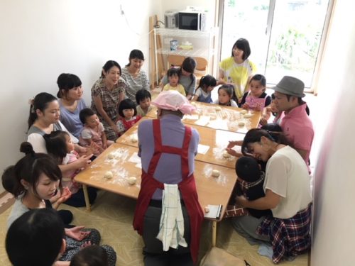 昨年、大好評だった、焼き立てパンが食べられるパン作りをOHANA Dayに行いました! パン作りの先生は近所にお住いの文夫さん♪ 趣味で始めたパン作りですが、素材にこだわり、ふわふわの美味しいパンを作るのが得意です☆ 成