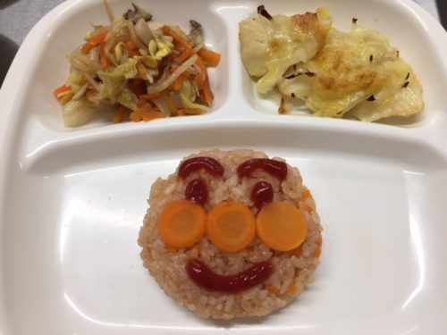 毎月1回、お楽しみ給食としてその月にお誕生日の子がいると、その子の好きなキャラクターを給食で表現してくれる栄養士の千春さん。 今月誕生日を迎えるEちゃんは、アンパンマンが大好き♡ お話が上手になってきて、アンパンマンのぬ
