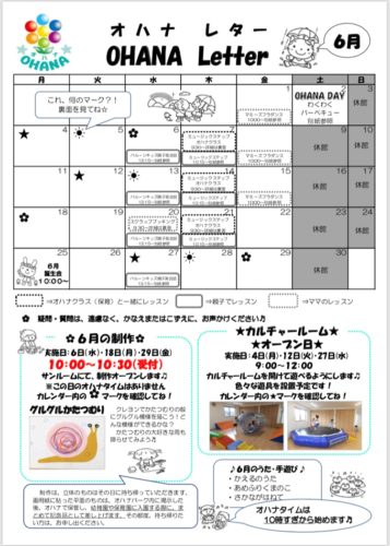 6月のOHANA Letterが出来上がりました! 6月のOHANA Dayは親子バーベキュー★ 親子の絆を深め、楽しい時間を一緒に過ごしたいと思います♪ 参加の締切は今週末(5月25日(金))までです!