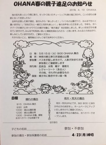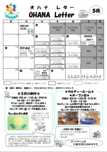 連休がいっぱい、おでかけ日和の5月♬ もうお出かけ場所など、お決まりですか? OHANAでも親子遠足にパン作りなど、いろいろと計画中。 詳しくはOHANA Letter5月号をご覧ください! イベント参加はOHANAパス