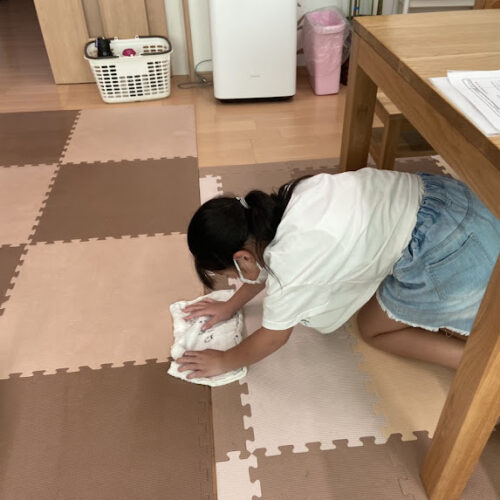 小学生たちは掃除も、自分たちでやります。出来ることは自分たちでやります。 学校でも頑張って疲れて帰ってきてるのに、放課後も頑張ってます。なので、遊ぶときは思いっきり遊びます! ちなみに、雑巾は子どものたちの手縫いです。