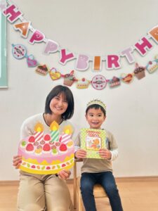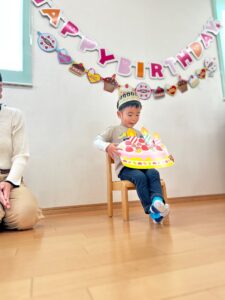 3歳になったGくん。手形をとったお誕生日カードをもらい、みんなから♪ハッピーバースデー♪の歌のプレゼントをもらい嬉しそう♡