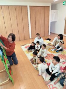 様々な経験と、毎日の絵本の読み聞かせの中で、想像力がついてきた子どもたちは“オオカミ”の存在を聞いただけで“怖い”と、ちゃんと想像できている様子でした。