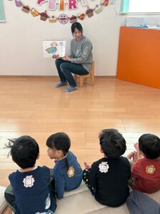 最近子どもたちがお気に入りな『北風小増の寒太郎』の歌をみんなで歌ったり、クリアパネルシアターを見たりして楽しい時間を過ごしました♪