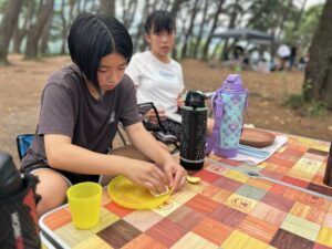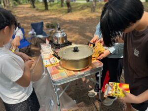 こちらも楽しみにしていたお昼のカレー作り♪災害時を想定して、毎年、このデイキャンプで非常食を使ったカレー作りをしています。