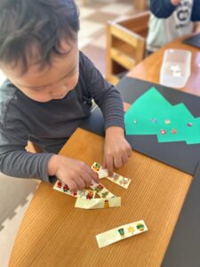 シール貼りは、指先のチカラを使うので、脳への刺激もあり、子どもたちの発達のためにとっても良い活動の一つです。