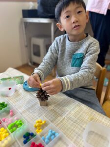 しめ縄やまつぼっくりのクリスマスツリー、ランタンツリーなど、作り物を楽しむ子どもたちもいました♪