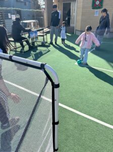 園庭ではサルティスタ橋本FCのみなさんが、ミニPKゲームやデスクサッカーなど、誰でも楽しめるサッカーで子どもから大人まで、楽しませてくれました!