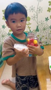 こういう遊びを通して、手首を使うようにすることで、手首などの関節が硬くなることを防げます★